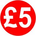 £5 Red Round Self Adhesive Peelable Price Labels/Stickers