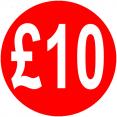 £10 Red Round Self Adhesive Peelable Price Labels/Stickers