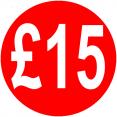 £15 Red Round Self Adhesive Peelable Price Labels/Stickers