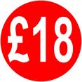 £18 Red Round Self Adhesive Peelable Price Labels/Stickers