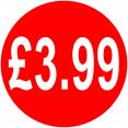 £3.99 Red Round Self Adhesive Peelable Price Labels/Stickers
