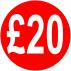 £20 Red Round Self Adhesive Peelable Price Labels/Stickers