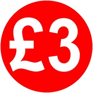 £3 Red Round Self Adhesive Peelable Price Labels/Stickers