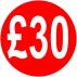 £30 Red Round Self Adhesive Peelable Price Labels/Stickers