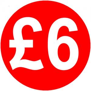 £6 Red Round Self Adhesive Peelable Price Labels/Stickers