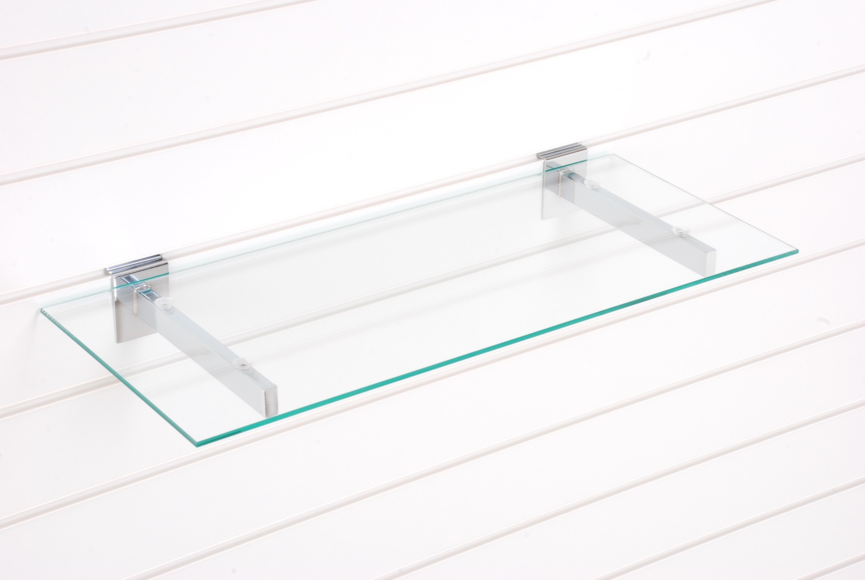 600mm x 310mm x 5mm Tempered Glass Shelves With Slatwall Brackets - Box Of 10