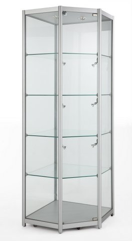 Aluminium Glass Corner Tower Showcase / Cabinet With 4 Shelves + Halogen Lights (W 650 x H 1980 x D 650) Special Delivery**