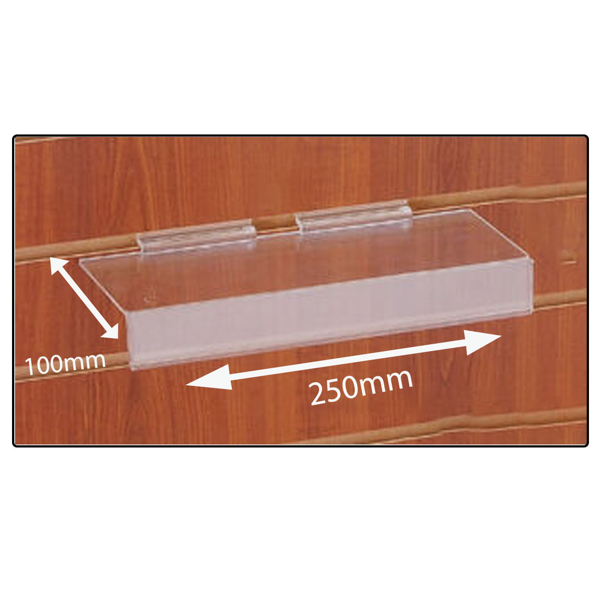 Heavy Duty Clear Plastic|Acrylic Slatwall 100mm X 250mm With 30mm Ticket Holder Shelf