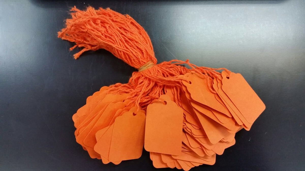 Orange 32mm X 22mm Coloured Strung String Kraft Tags Swing Price Tickets Jewellery Tie On Labels (Box of 1000)