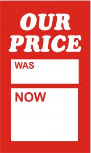 Our Price Was/Now Tickets 75mmx50mm-Pack Of 100